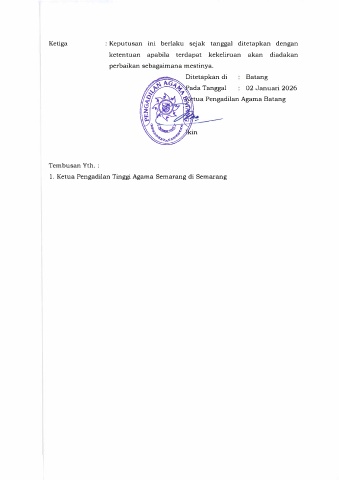 Ketiga : Keputusan ini berlaku sejak tanggal ditetapkan dengan