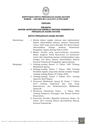 KEPUTUSAN KETUA PENGADILAN AGAMA BATANG