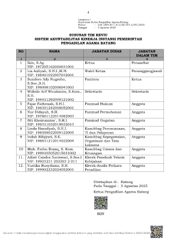 Keputusan Ketua Pengadilan Agama Batang