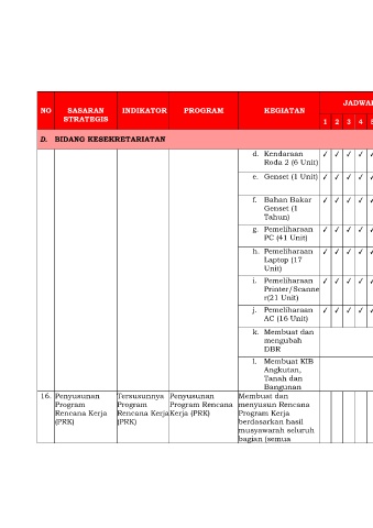 d. Kendaraan ✓ ✓ ✓ ✓ ✓ ✓ ✓ ✓ ✓ ✓ ✓ ✓ Terpeliharanya DIPA 01 6.796.000 Kasubbag Umum