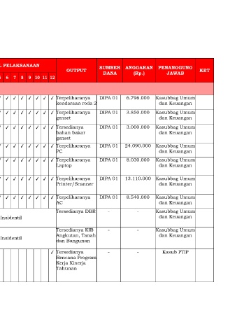 d. Kendaraan ✓ ✓ ✓ ✓ ✓ ✓ ✓ ✓ ✓ ✓ ✓ ✓ Terpeliharanya DIPA 01 6.796.000 Kasubbag Umum