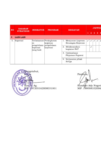 5. Koperasi Terlaksanan Peningkatan 1. Menyusun Laporan ✓ ✓ ✓ ✓ ✓ ✓ ✓ ✓ ✓ ✓ ✓ ✓ Terselenggaranya - - Ketua Koperasi