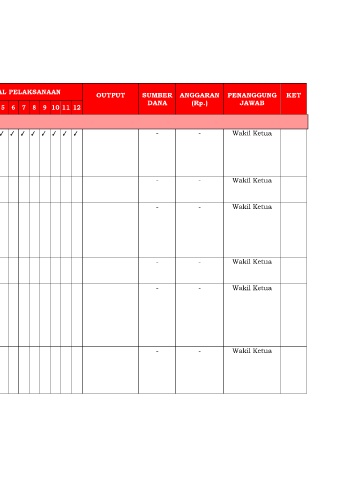 SASARAN INDIKATOR PROGRAM KEGIATAN JADWAL PELAKSANAAN OUTPUT SUMBER ANGGARAN PENANGGUNG KET