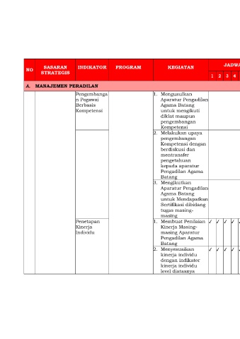 SASARAN INDIKATOR PROGRAM KEGIATAN JADWAL PELAKSANAAN OUTPUT SUMBER ANGGARAN PENANGGUNG KET