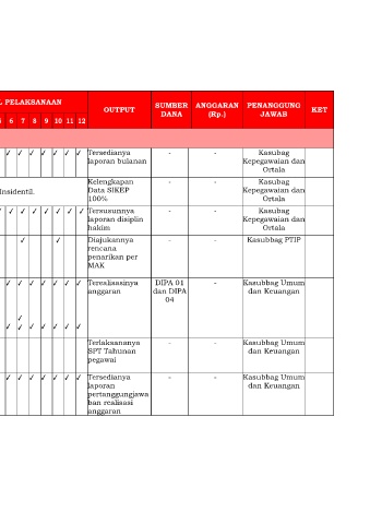 10. Pembukuan Terlaksanany Pembukuan Membuat laporan ✓ ✓ ✓ ✓ ✓ ✓ ✓ ✓ ✓ ✓ ✓ ✓ Tersedianya - - Kasubbag Umum