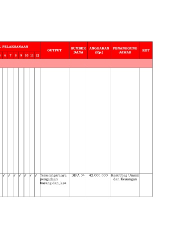 14. Penyelenggaraan Terlaksanany Penyelenggaraan Melakukan ✓ ✓ ✓ ✓ ✓ ✓ ✓ ✓ ✓ ✓ ✓ ✓ Terselengaranya DIPA 04 42.000.000 Kasubbag Umum