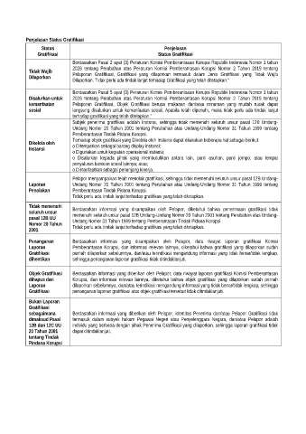 Gratifikasi penanganan laporan gratifikasi atas objek gratifikasi tersebut tidak ditindaklanjuti.